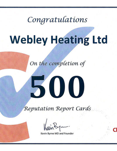 Webley Heating is proud to have received over 500 reputation report cards the on Checkatrade.com website.
